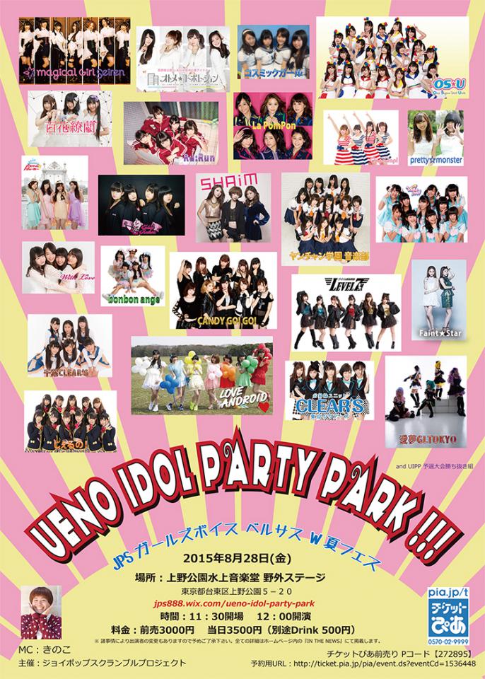 場所:上野公園水上音楽堂 野外ステージ 東京都台東区上野公園5-20 jps888.wix.com/ueno-idol-party-park 時間:11:30開場 12:00開演 料金:前売3000円 当日3500円(別途Drink 500円) …